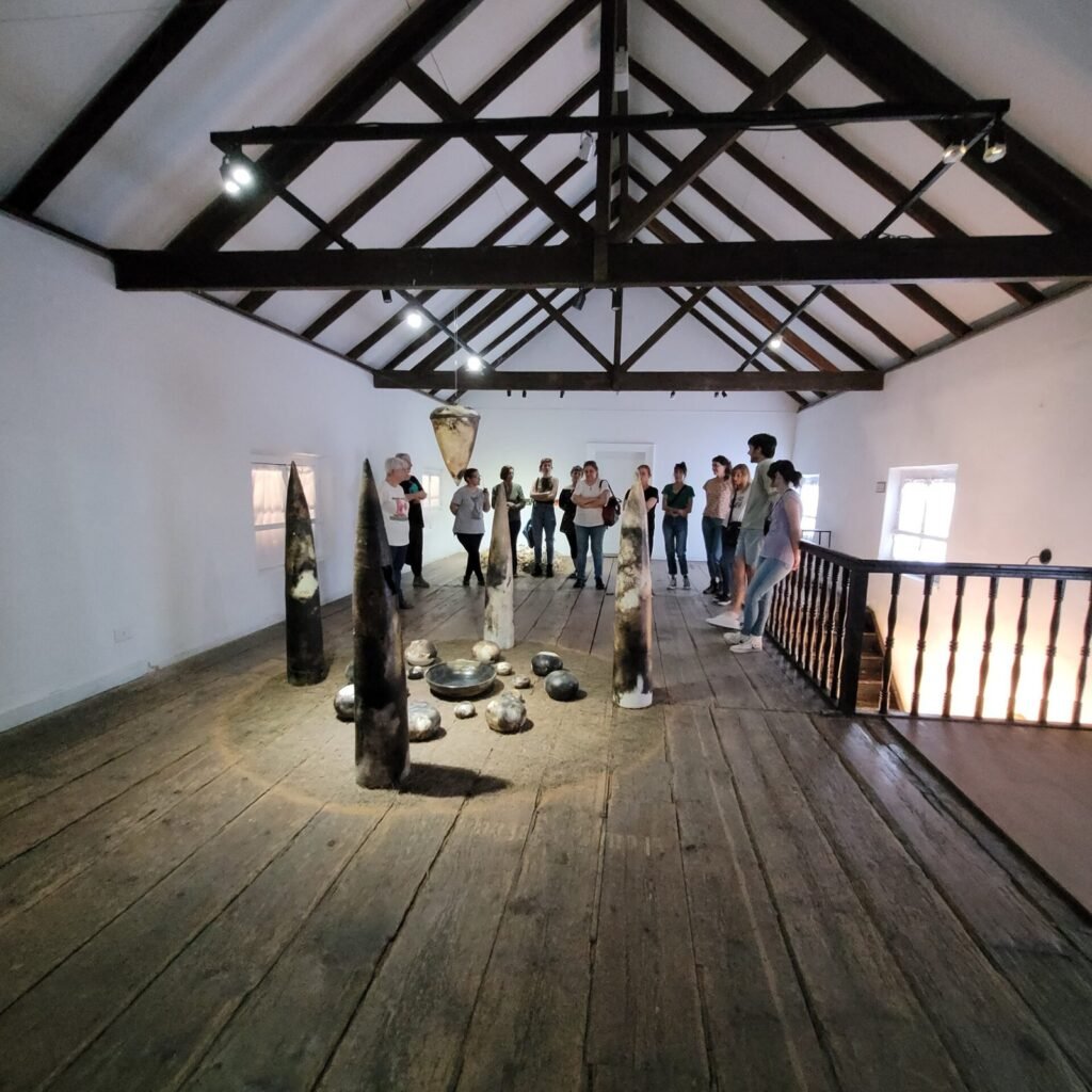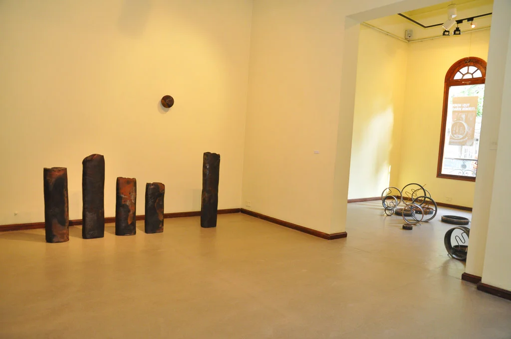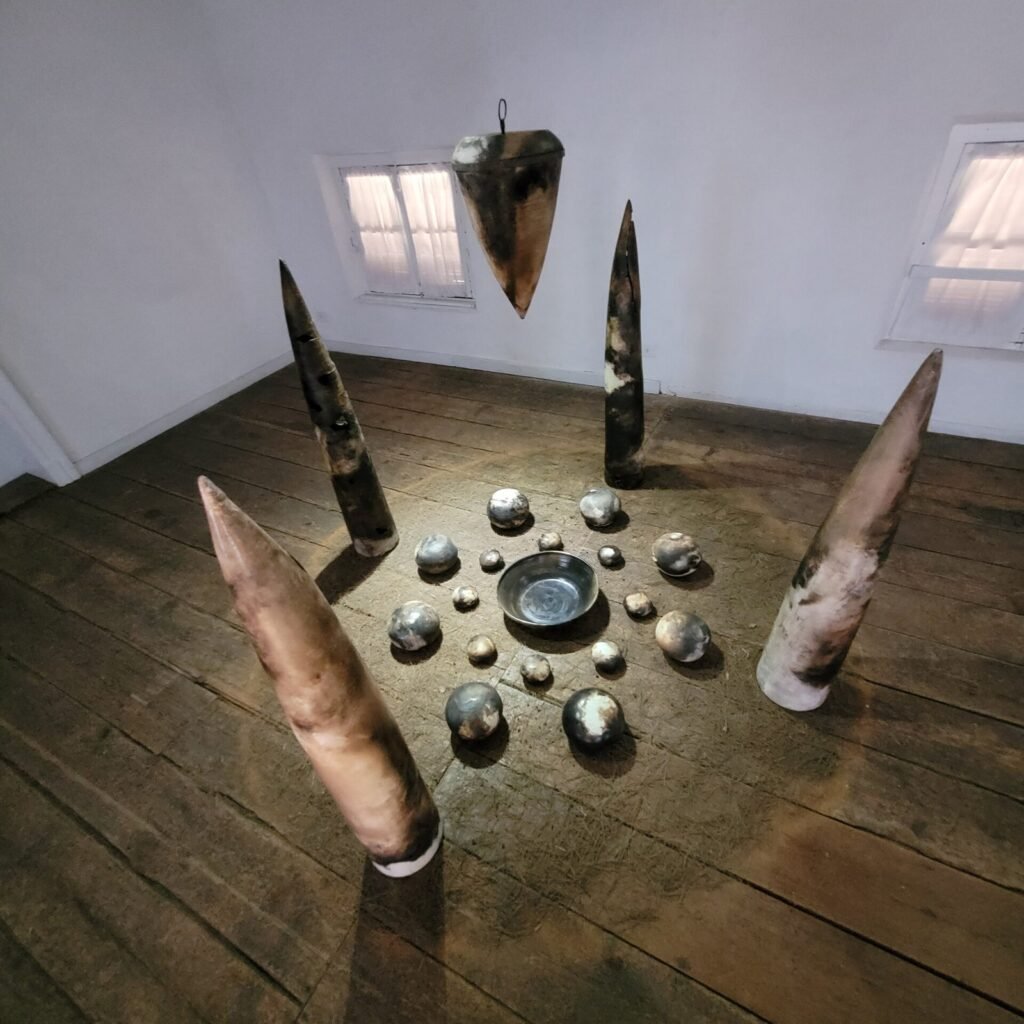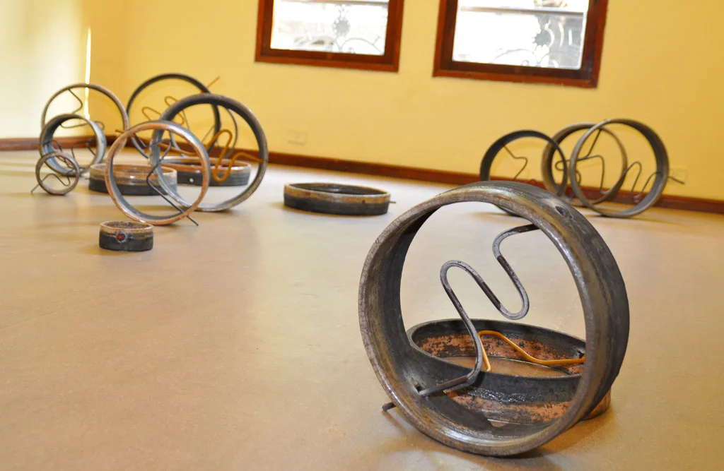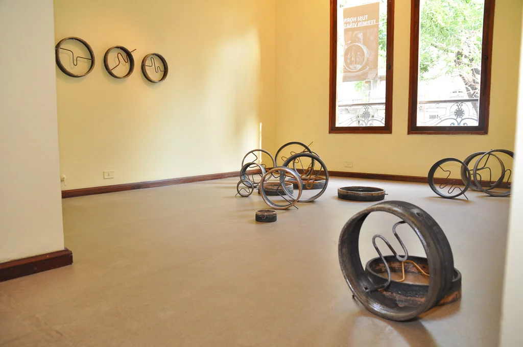 Exposición de producción en el hall de la escuela de artes Profesor Juan Mantovani.